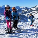 If the conditions for riding are difficult, it has proved to be a good idea to ski in a lane with children. This means adult skis in front and the children follow this line at safe distances. In this way, they are relieved of the decision of the ideal place to change direction – and all of them reach the valley with significantly fewer falls and still at an adequate pace.